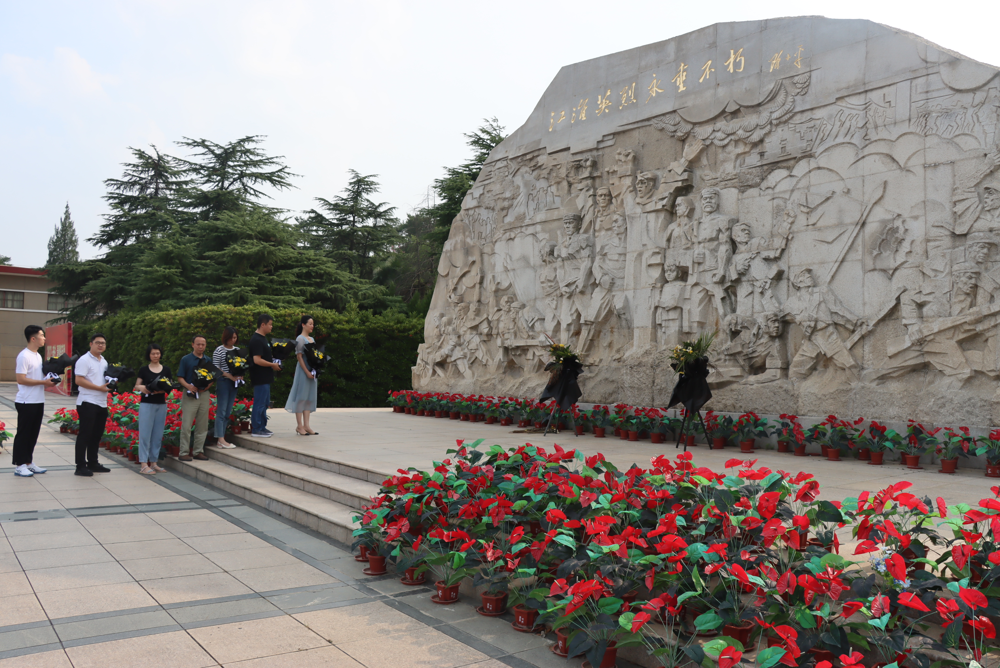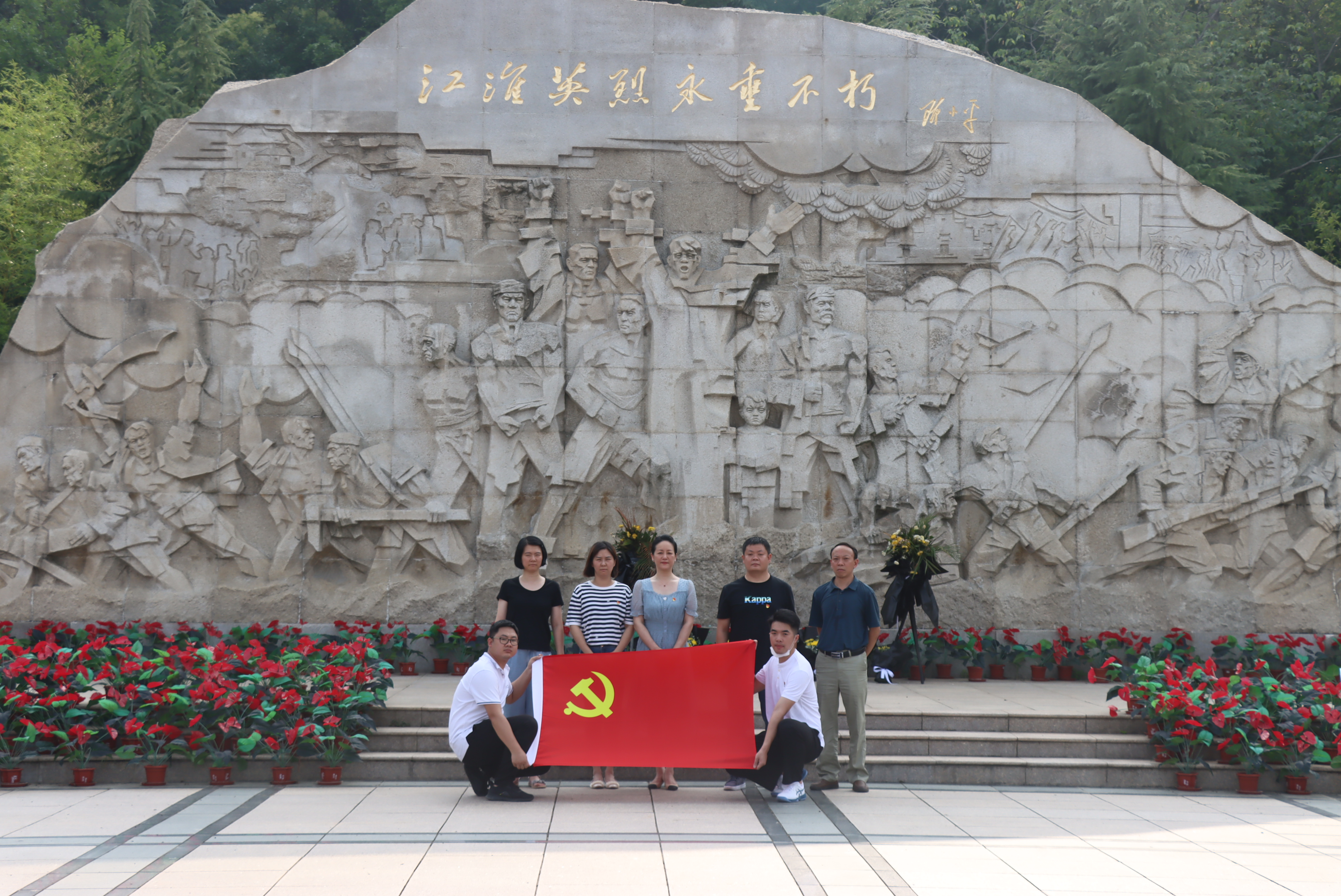 活動(dòng)中,大家沿著臺(tái)階拾級(jí)而上,在黨支部負(fù)責(zé)人葉敏的帶領(lǐng)下,全體黨員面對(duì)“江淮英烈永垂不朽”紀(jì)念碑重溫入黨誓詞,“我志愿加入中國共產(chǎn)黨,擁護(hù)黨的綱領(lǐng)……”每名黨員的誓言,聲音洪亮豪邁,字字鏗鏘有力,表達(dá)出為黨的事業(yè)奮斗終生的決心和忠心。隨后,大家在莊嚴(yán)肅穆的紀(jì)念碑前集體肅立,并敬獻(xiàn)鮮花,以表對(duì)烈士的敬意,寄托哀思。