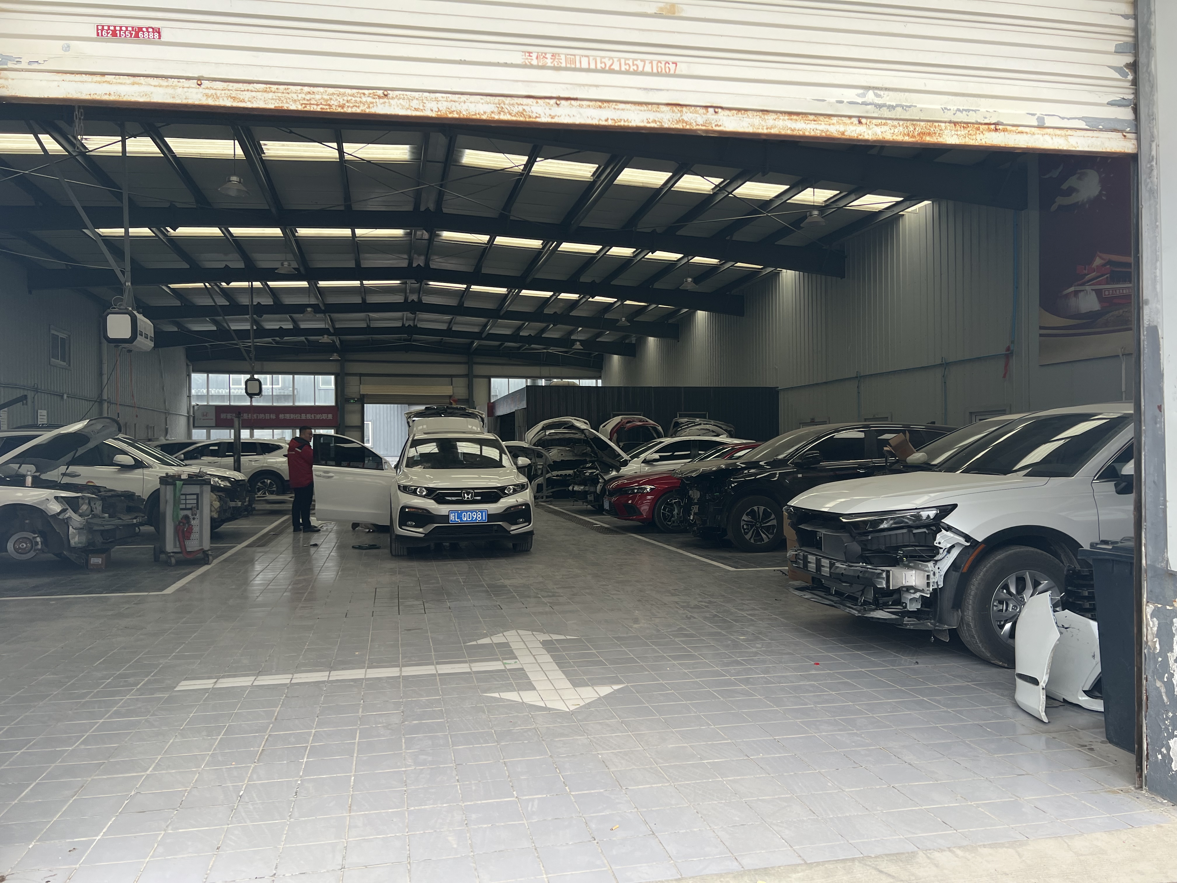 售后二車間擺放著待修的事故車