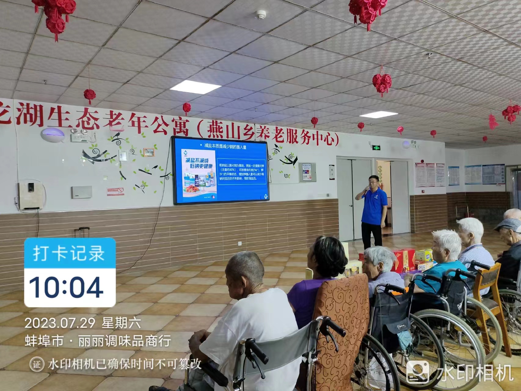 黨員志愿者們?yōu)槔先藗兯蜕吓D獭⒓儍羲⒏恻c和鹽等慰問品,為他們講解食鹽健康知識,表演脫口秀、歌舞等節(jié)目。老人們十分感動,連聲說“謝謝你們的到來,我們今天非常開心”。