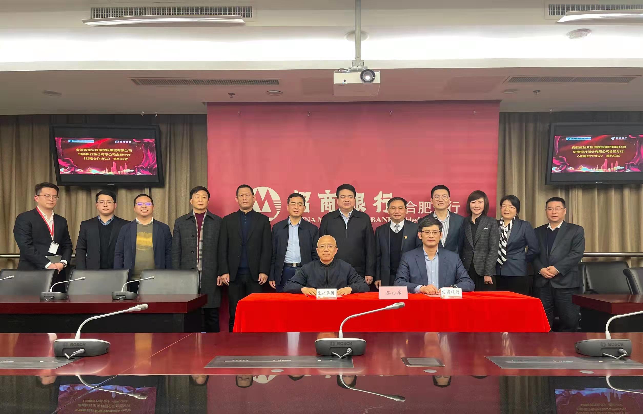 2月10日下午,省鹽業(yè)集團(tuán)公司與招商銀行合肥分行簽署戰(zhàn)略合作協(xié)議。省鹽業(yè)集團(tuán)公司黨委書記、董事長羅太忠,黨委副書記、總經(jīng)理、董事王思軍,招商銀行合肥分行黨委書記、行長李軍出席簽約儀式。省鹽業(yè)集團(tuán)公司黨委委員、副總經(jīng)理余保山,招商銀行合肥分行黨委委員、副行長李健分別代表雙方簽署戰(zhàn)略合作協(xié)議。