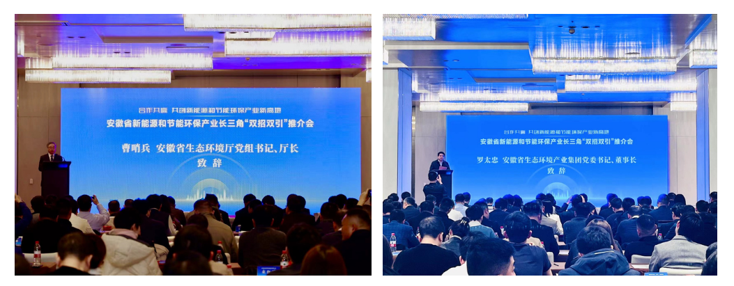 曹哨兵在致辭時指出,近年來,安徽省委、省政府緊緊圍繞打造新興產(chǎn)業(yè)聚集地的目標(biāo),大力推動十大新興產(chǎn)業(yè)聚鏈成群、集群成勢,建立了十大新興產(chǎn)業(yè)省級專班推進(jìn)機制,堅持把“雙招雙引”作為產(chǎn)業(yè)發(fā)展新打法,在更大市場空間集聚資源。安徽省生態(tài)環(huán)境廳作為新能源和節(jié)能環(huán)保產(chǎn)業(yè)專班牽頭單位,聚焦新能源、高效節(jié)能、先進(jìn)環(huán)保、資源循環(huán)利用、碳中和五大領(lǐng)域,不斷優(yōu)化營商環(huán)境、完善涉企服務(wù)、加強要素保障,產(chǎn)業(yè)發(fā)展勢頭強勁。
