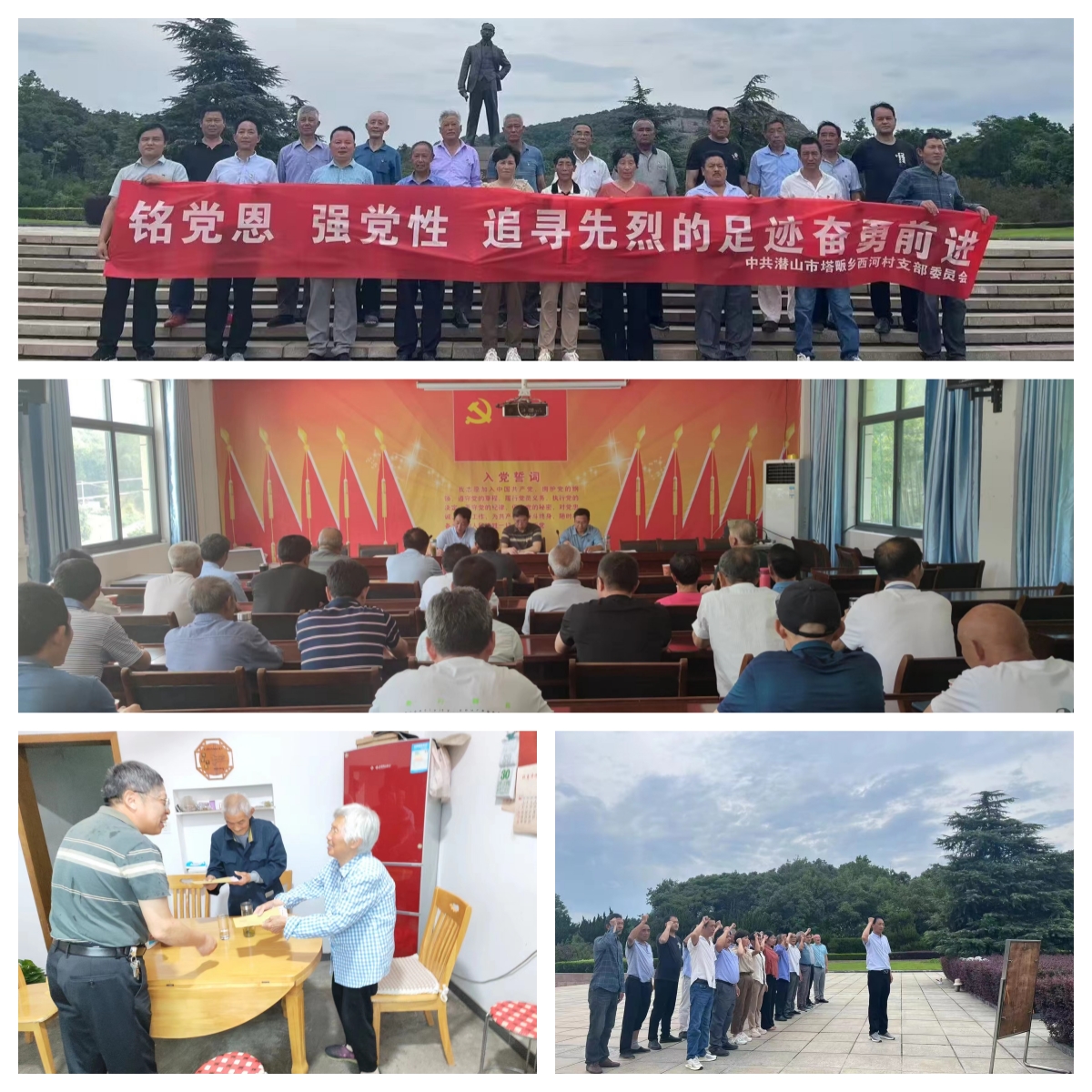 此外,駐村工作隊還在“七一”期間,組織共建支部全體黨員到西河烈士墓祭奠并重溫入黨誓詞。并組織西河村黨支部黨員參觀了中國共產(chǎn)黨創(chuàng)始人陳獨秀紀(jì)念墓園——獨秀園,了解陳獨秀生平事跡,重溫了中國共產(chǎn)黨在誕生和發(fā)展之初的偉大歷史,進一步堅定不忘初心、牢記使命的信念和決心。