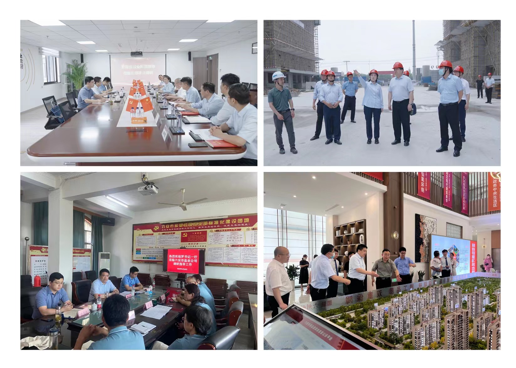 在霍邱項目公司,羅太忠實地查看了項目二期建設、產(chǎn)品樣板以及安全生產(chǎn)等情況;在六安市鹽業(yè)公司,羅太忠查看了鹽品倉庫,了解食鹽儲備任務落實情況;隨后在兩地分別召開座談會,聽取黨建和生產(chǎn)經(jīng)營工作匯報。與領導班子、部門負責人、黨員和一線員工代表就黨建與生產(chǎn)經(jīng)營融合,企業(yè)下一步發(fā)展思路以及需要集團公司協(xié)調(diào)解決的問題進行深入交流。