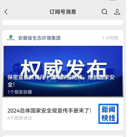 集團(tuán)及部分子企業(yè)通過張貼普法宣傳海報、微信公眾號及普法專欄發(fā)布國家安全教育普法材料、組織員工參與在線答題,通過投屏播放宣傳視頻的方式積極引導(dǎo)員工增強(qiáng)國家安全意識和法治觀念。