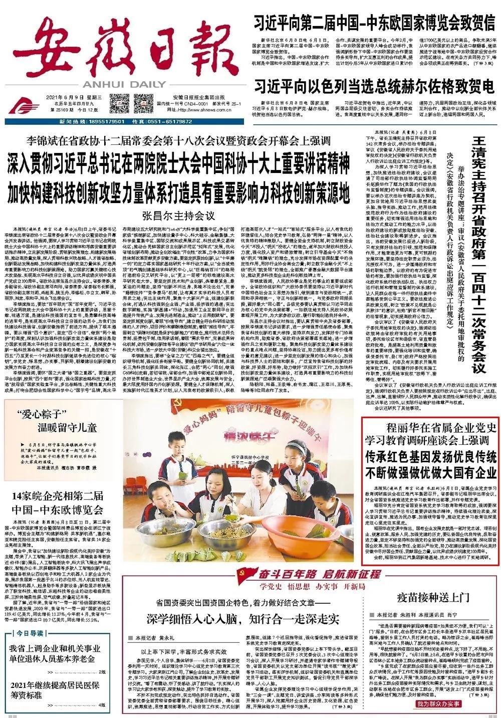 省屬企業(yè)黨史學(xué)習(xí)教育調(diào)研座談會6月8日召開,省委副書記程麗華出席會議。安徽新聞聯(lián)播和安徽日報(bào)頭版對此進(jìn)行報(bào)道,一起來看: