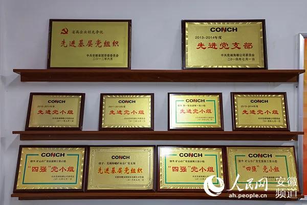 蕪湖海螺礦山分廠黨支部榮譽(yù)墻。人民網(wǎng) 王曉飛攝
