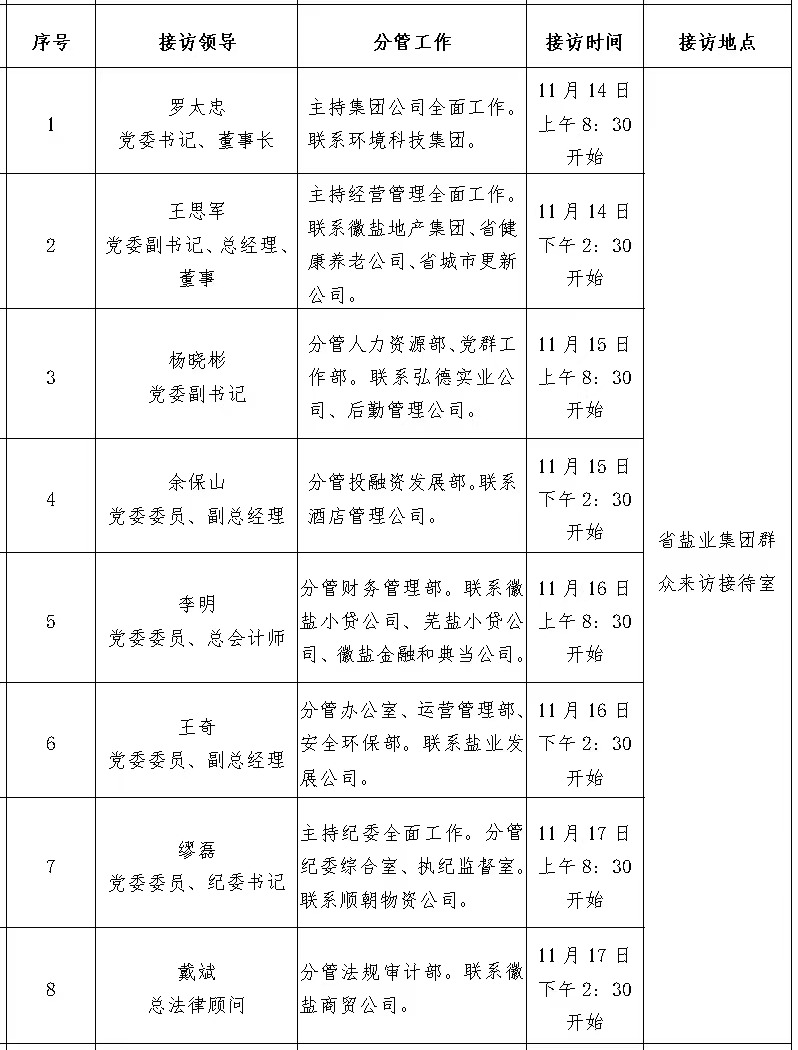 三、省鹽業(yè)集團(tuán)領(lǐng)導(dǎo)接訪安排