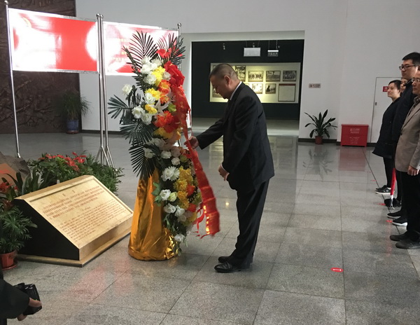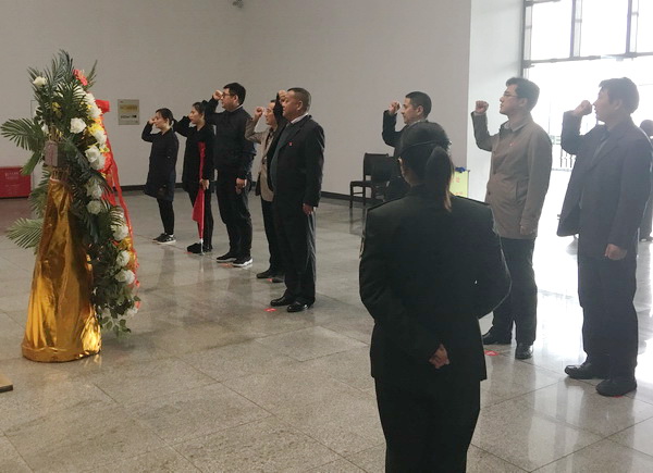 首先,全體黨員來(lái)到云嶺新四軍史料陳列館。在入口處,舉行了向革命先烈敬獻(xiàn)花籃儀式。深情的《獻(xiàn)花曲》中,支部書(shū)記王克山神情莊重,緩步上前,悉心整理花籃緞帶,全體黨員深深三鞠躬,表達(dá)了對(duì)革命先烈的深切緬懷和無(wú)限敬仰。接著,面對(duì)鮮紅的黨旗,在王克山領(lǐng)誓下,全體黨員舉起右拳,重溫了入黨誓詞。錚錚誓言久久回蕩,表達(dá)了全體黨員“不忘初心、牢記使命”的堅(jiān)定政治信念。